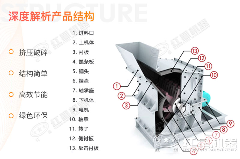 紅星細(xì)碎機是連續(xù)作業(yè)式設(shè)備,運行性能穩(wěn)定可靠,工藝簡化,結(jié)構(gòu)簡單,維修方便,生產(chǎn)能力大,錘頭使用壽命長,廣泛適用于花崗巖,玄武巖,石灰?guī)r,河卵石,水泥熟料,石英石,鐵礦石,鋁礬土等多種礦物的細(xì)式破碎。
